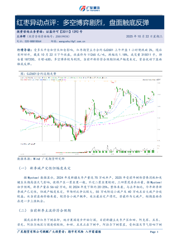 【广发期货研究所】【202510】红枣异动点评:多空博弈剧烈,盘面触底反弹-3页