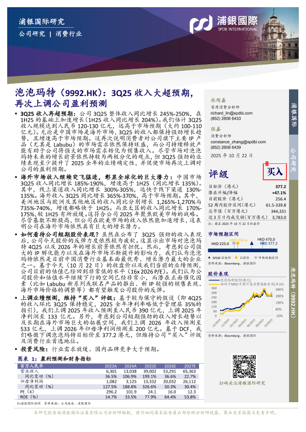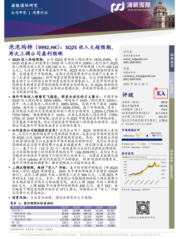 【浦银国际】【202510】泡泡玛特(9992.HK):3Q25收入大超预期,再次上调公司盈利预测-8页