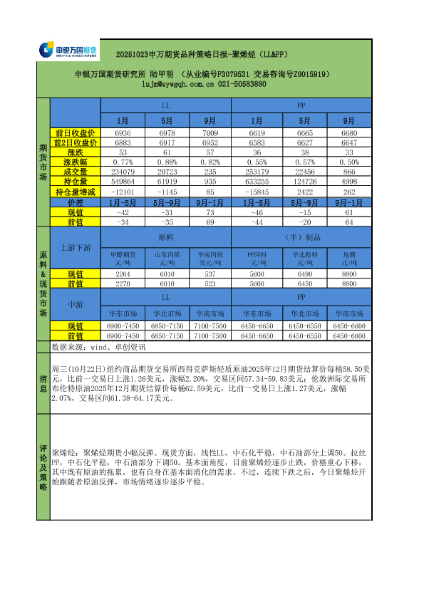 【申银万国期货】【202510】20251023申万期货品种策略日报-聚烯烃(LL&PP)-2页