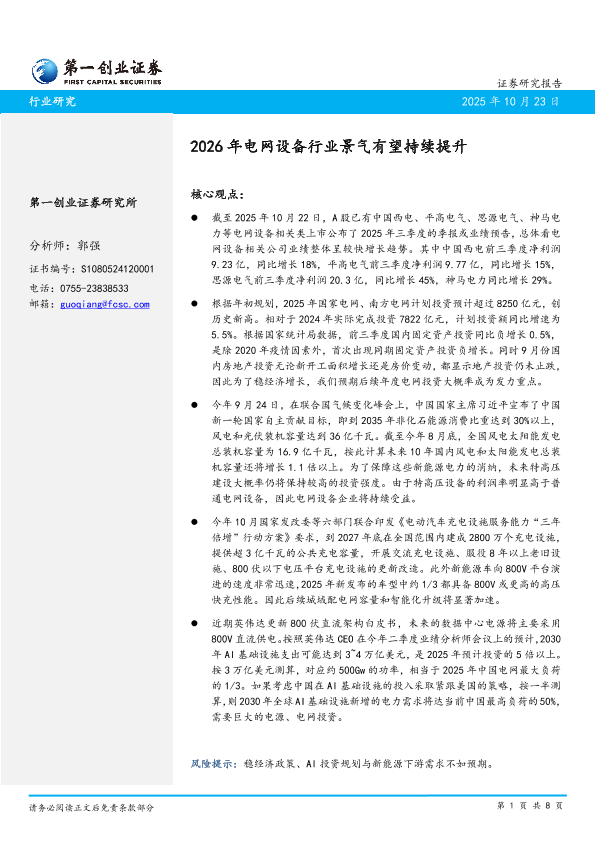 【第一创业证券】【202510】2026年电网设备行业景气有望持续提升-8页