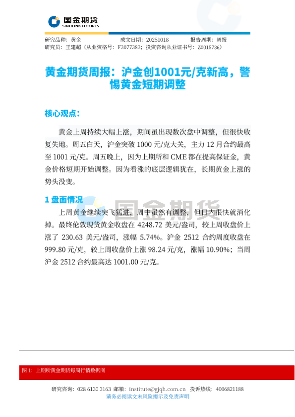 【国金期货】【202510】黄金期货周报:沪金创1001元/克新高,警惕黄金短期调整-5页