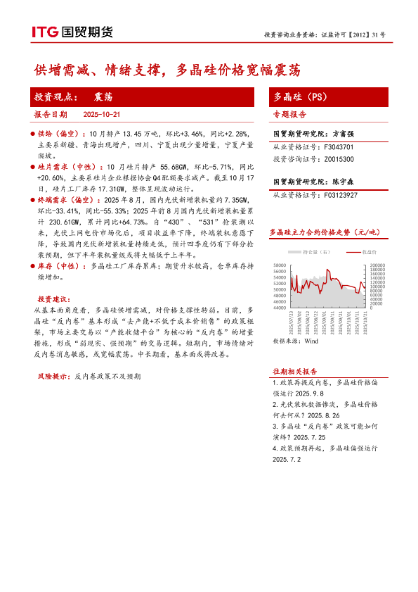 【国贸期货】【202510】供增需减、情绪支撑,多晶硅价格宽幅震荡-5页