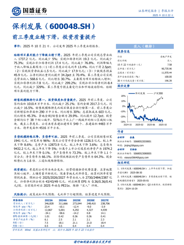 【国盛证券】【202510】前三季度业绩下滑,投资质量提升-3页