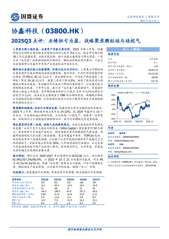 【国盛证券】【202510】协鑫科技(03800.HK):2025Q3点评:业绩扭亏为盈,战略聚焦颗粒硅与硅烷气-3页