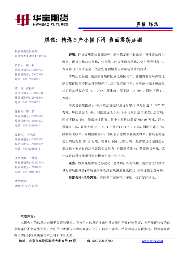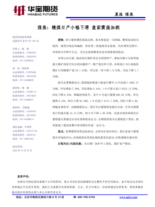 【华宝期货】【202510】煤焦_精煤日产小幅下滑盘面震荡加剧-1页