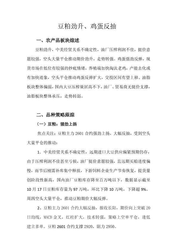 【天富期货有限公司】【202510】豆粕劲升、鸡蛋反抽-10页