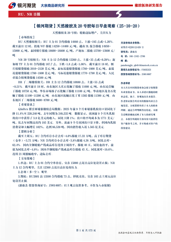 【银河期货】【202510】天然橡胶及20号胶每日早盘观察-173页