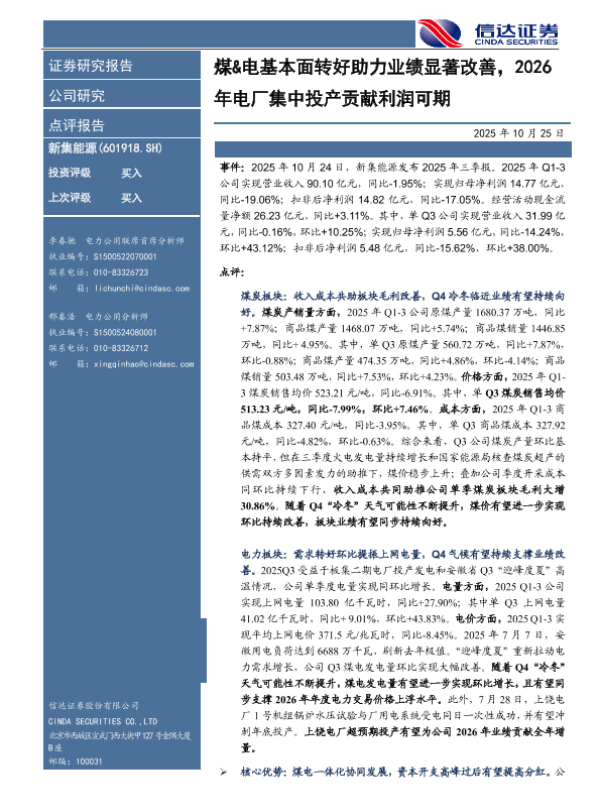 【信达证券】【202510】煤&电基本面转好助力业绩显著改善,2026年电厂集中投产贡献利润可期-5页