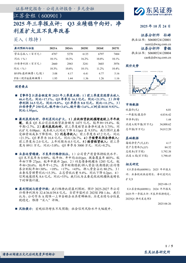 【东吴证券】【202510】2025年三季报点评:Q3业绩稳中向好,净利差扩大且不良率改善-5页