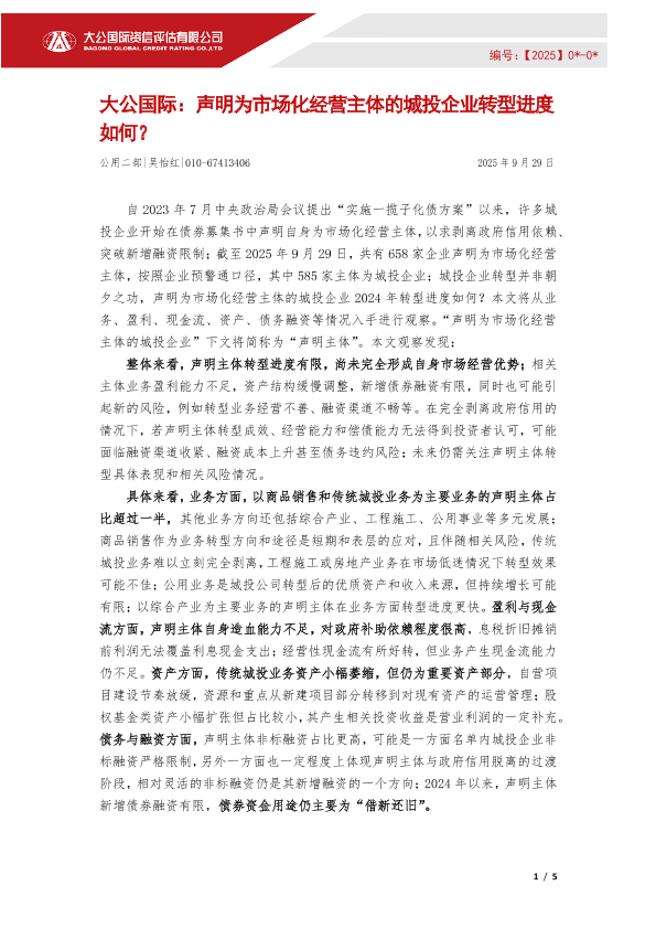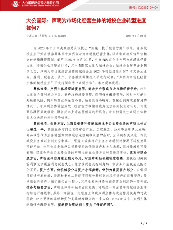 【大公国际】【202509】声明为市场化经营主体的城投企业转型进度如何?-5页
