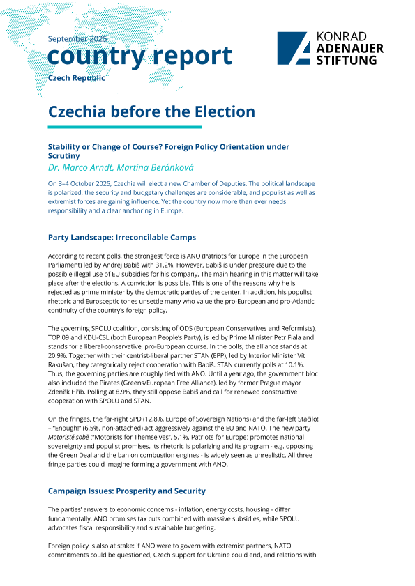 【Konrad-Adenauer-Stiftung e. V.】【2025】Czechia before the Election Stability or Change of Course? Foreign Policy Orientation under Scrutiny-3页