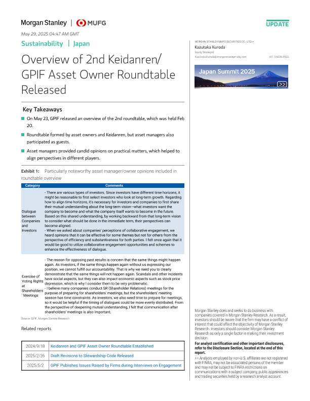 【Morgan Stanley MUFG Securities Co.&Ltd.】【202505】Overview of 2nd Keidanren/ GPIF Asset Owner Roundtable Released-6页