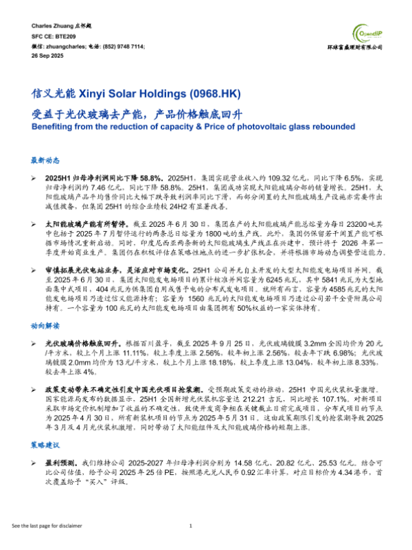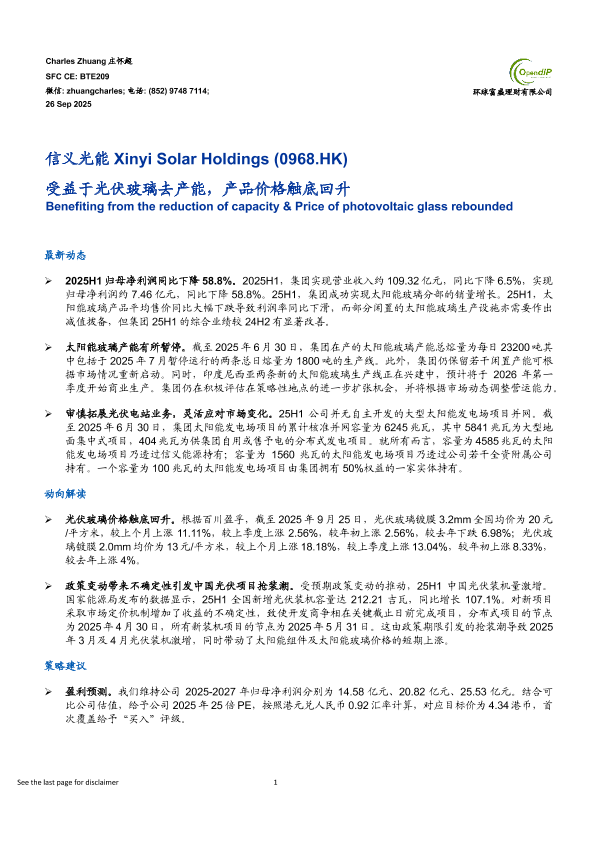 【环球富盛理财有限公司】【202509】受益于光伏玻璃去产能,产品价格触底回升-8页