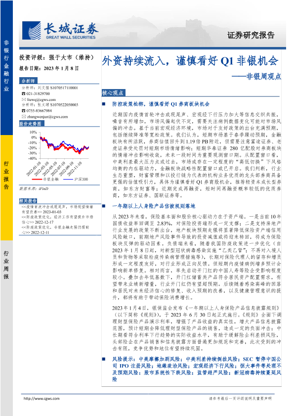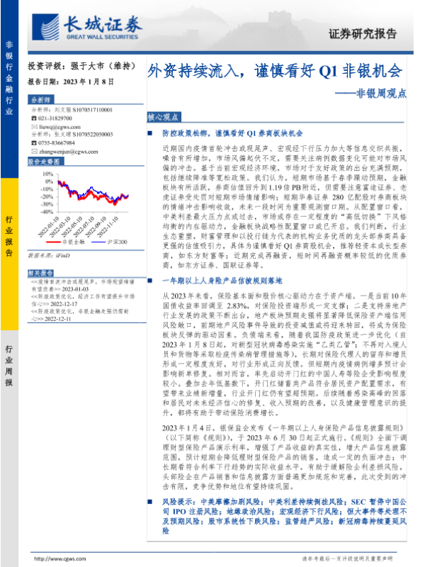 【长城证券】【20230108】非银周观点:外资持续流入,谨慎看好Q1非银机会-33页