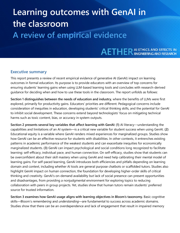 【Microsoft Aether Psychological Influences of AI(Psi) working group】【2025】Learning Outcomes with GenAI in the Classroom A review of empirical evidence-22页