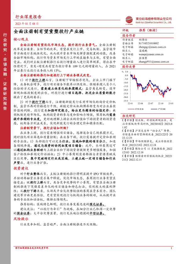 【东亚前海证券】【20230108】非银金融行业深度报告:全面注册制有望重塑投行产业链-30页