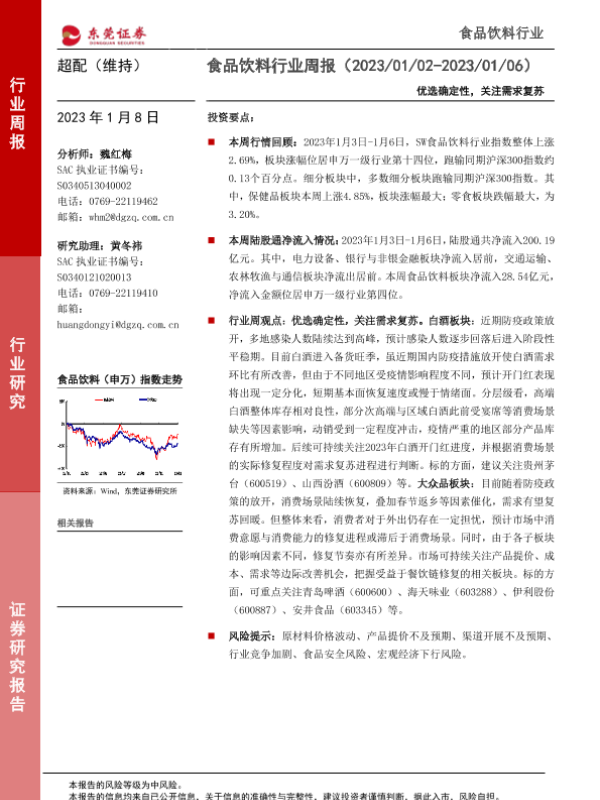 【东莞证券】【20230108】食品饮料行业周报:优选确定性,关注需求复苏-15页