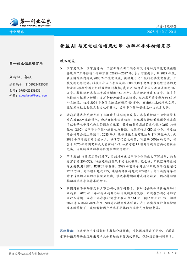 【第一创业证券】【202510】受益AI与充电桩倍增规划等功率半导体持续复苏-7页