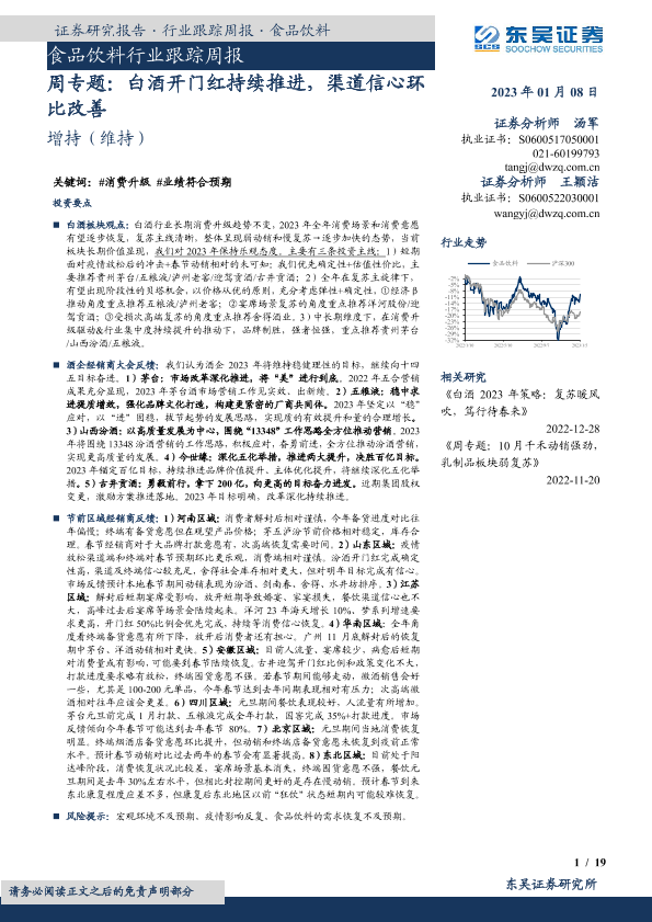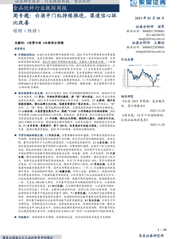 【东吴证券】【20230108】食品饮料行业跟踪周报:周专题:白酒开门红持续推进,渠道信心环比改善-19页