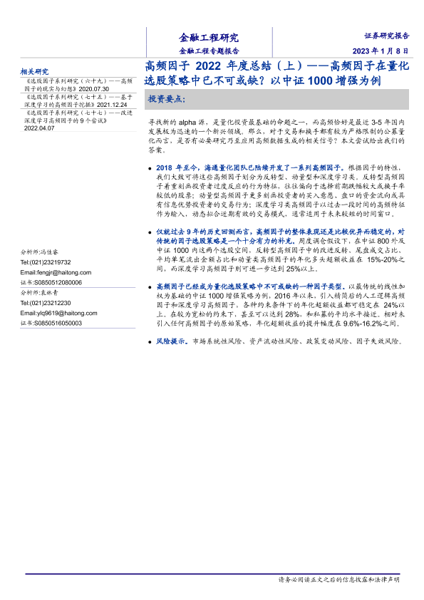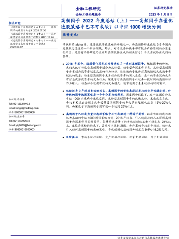 【海通证券】【20230108】高频因子2022年度总结(上):高频因子在量化选股策略中已不可或缺?以中证1000增强为例-18页