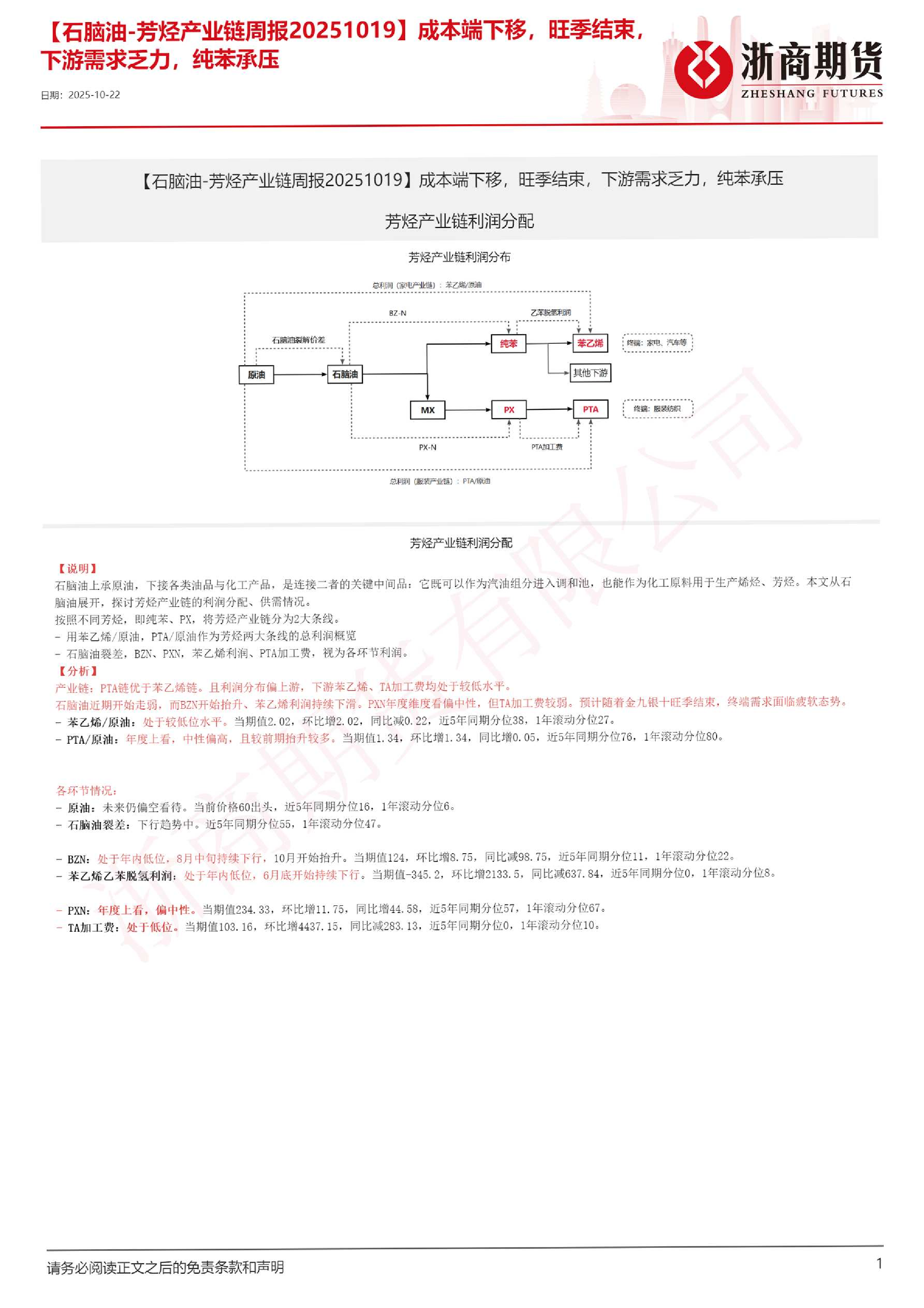 【浙商期货】【202510】石脑油-芳烃产业链周报 20251019 成本端下移 旺季结束 下游需求乏力 纯苯承压-21页