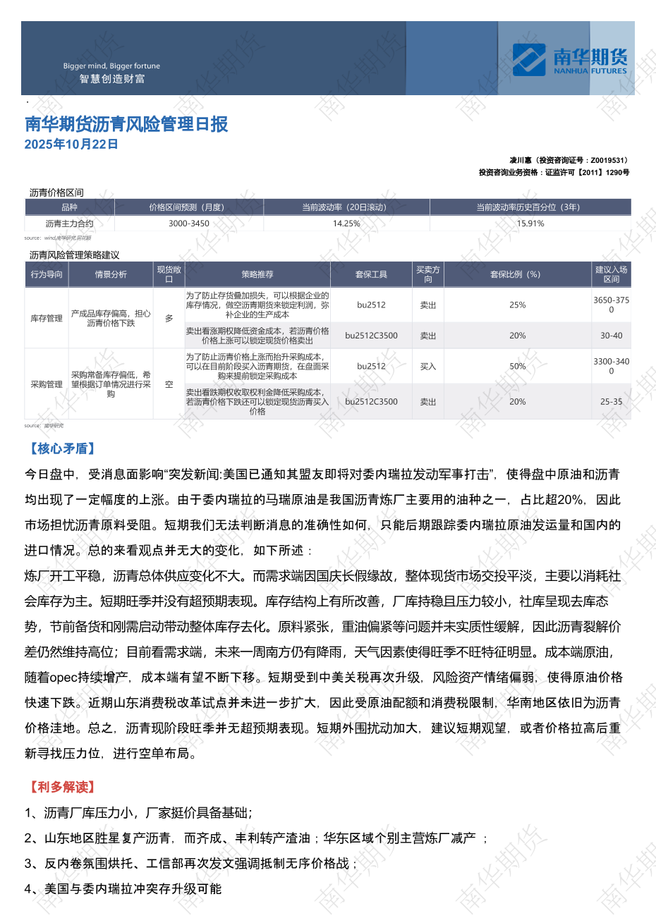 【南华期货】【202510】沥青风险管理日报-4页
