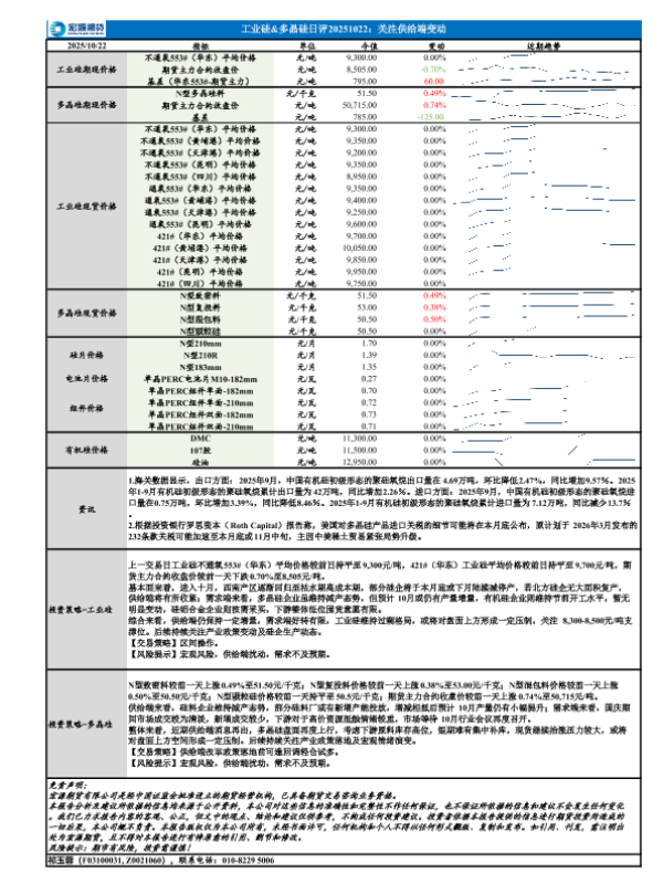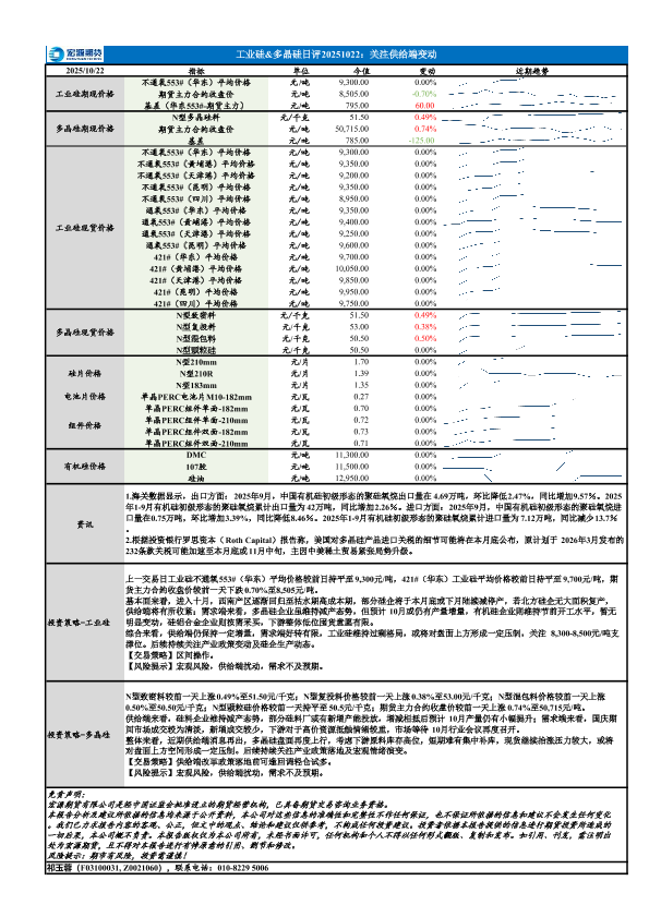 【宏源期货】【202510】工业硅&多晶硅日评20251022:关注供给端变动-1页