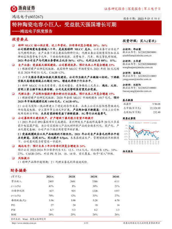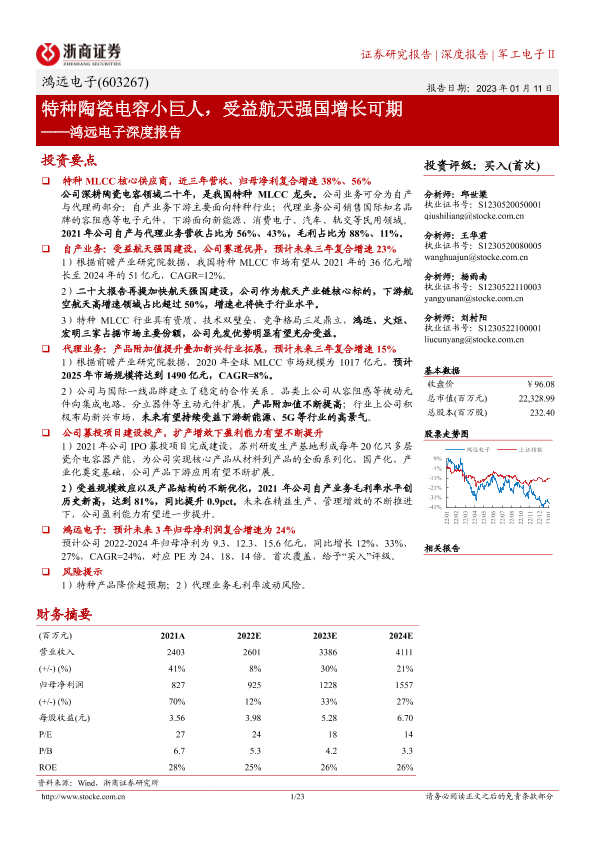 【浙商证券】【20230111】鸿远电子深度报告:特种陶瓷电容小巨人,受益航天强国增长可期-23页