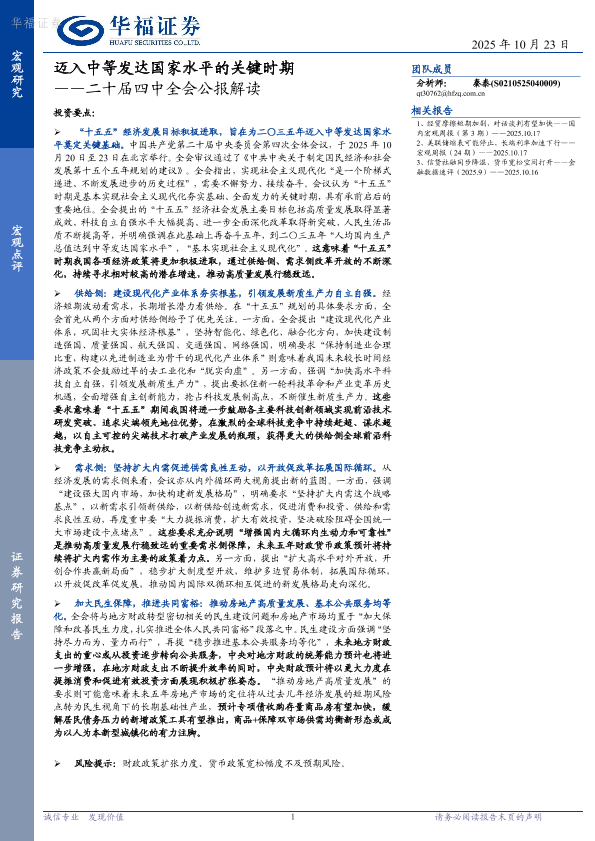【华福证券】【202510】迈入中等发达国家水平的关键时期——二十届四中全会公报解读-2页