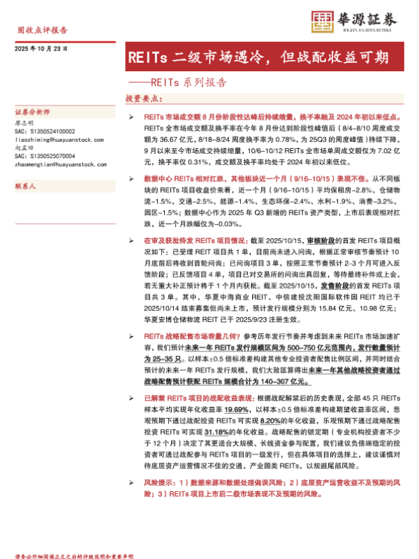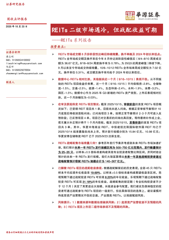 【华源证券】【202510】REITs二级市场遇冷,但战配收益可期——REITs系列报告-9页