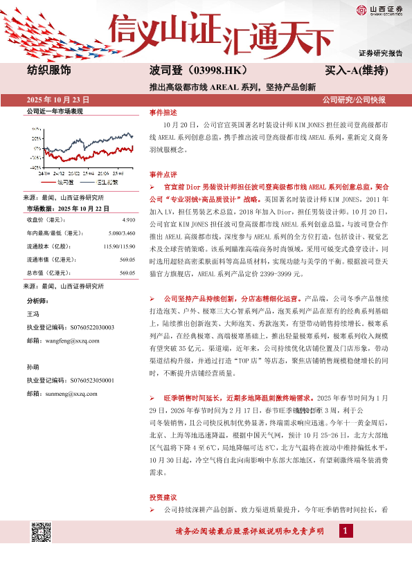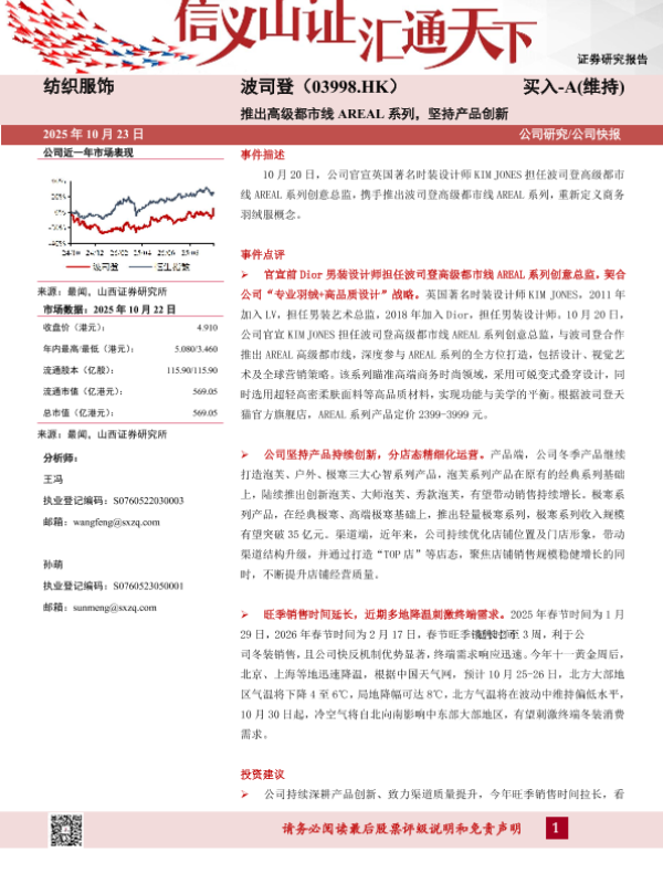 【山西证券】【202510】纺织服饰 波司登(03998.HK) 买入-A(维持) 推出高级都市线 AREAL系列,坚持产品创新-5页