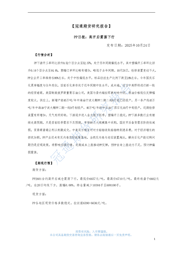 【冠通期货股份有限公司】【202510】PP日报:高开后震荡下行-3页