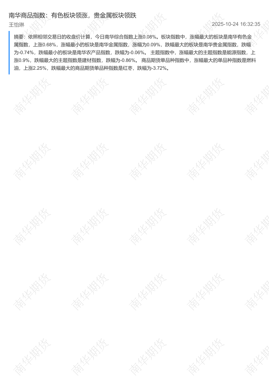 【南华期货】【202510】南华商品指数:有色板块领涨,贵金属板块领跌-2页