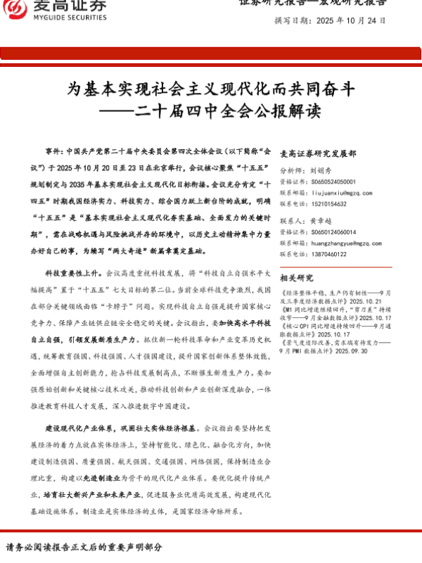 【麦高证券】【202510】为基本实现社会主义现代化而共同奋斗 ——二十届四中全会公报解读-4页