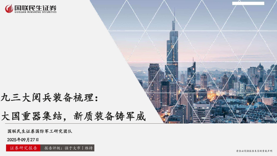 【国联民生证券国防军工研究团队】【202509】九三大阅兵装备梳理:大国重器集结,新质装备铸军威-26页