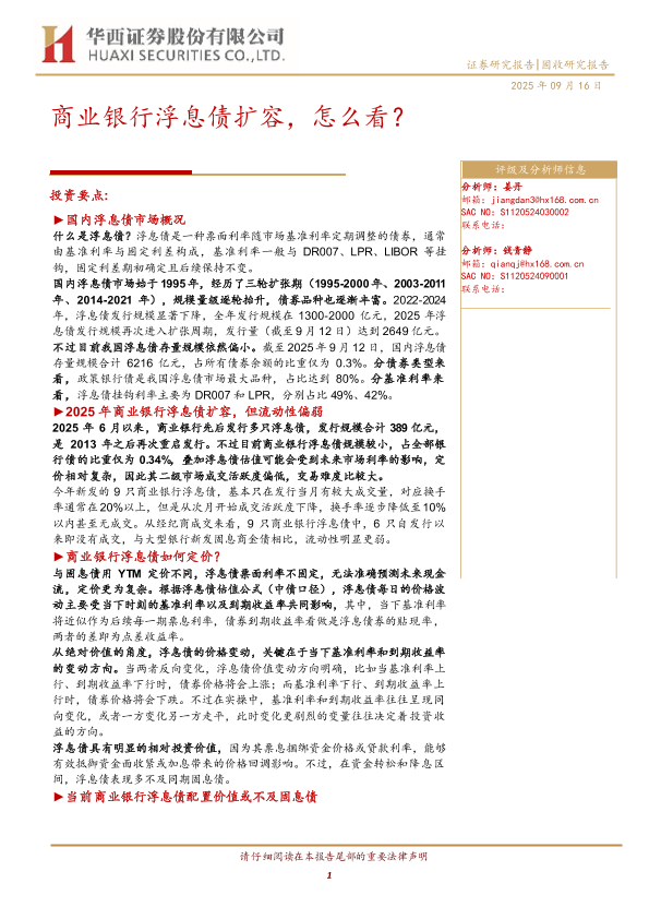 【华西证券】【202509】商[Table业_Titl银e]行浮息债扩容,怎么看?-14页