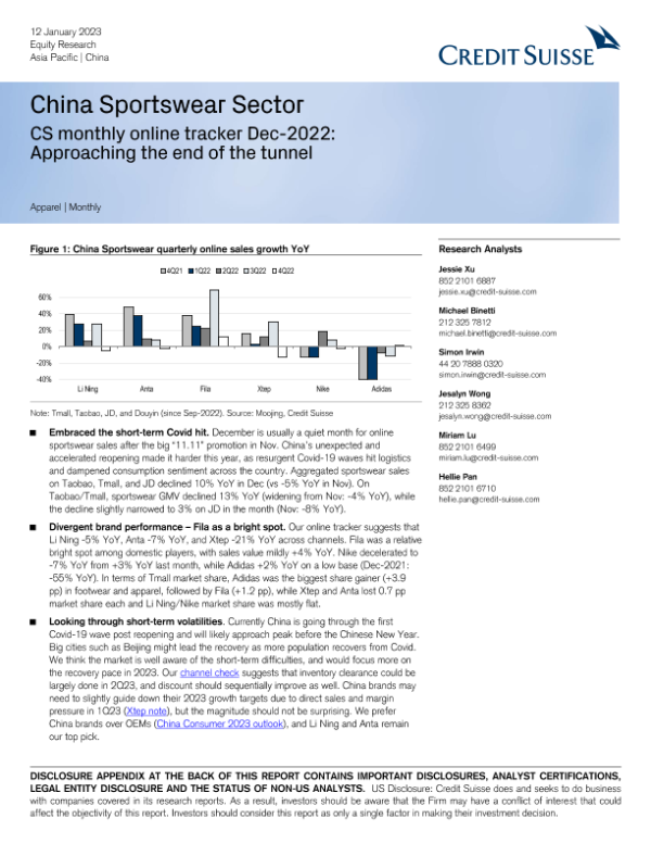 【Credit Suisse】【20230112】Sector_CS monthly online tracker Dec-2022 Approaching the end of the tunnel-16页