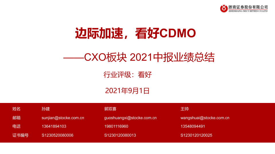 【浙商证券】【20210901】医药生物行业CXO板块2021中报业绩总结:边际加速,看好CDMO-28页