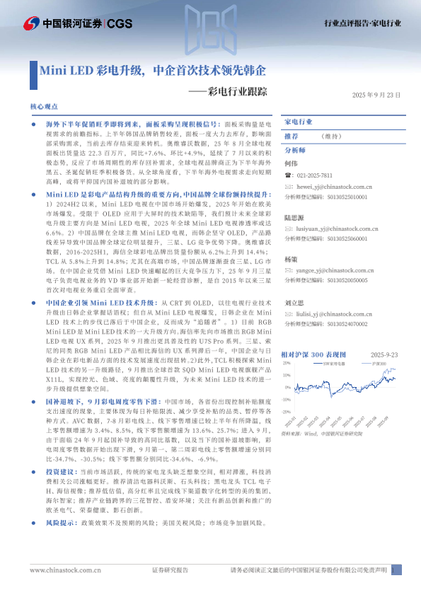 【银河证券】【202509】彩电行业跟踪_Mini_LED彩电升级_中企首次技术领先韩企-15页