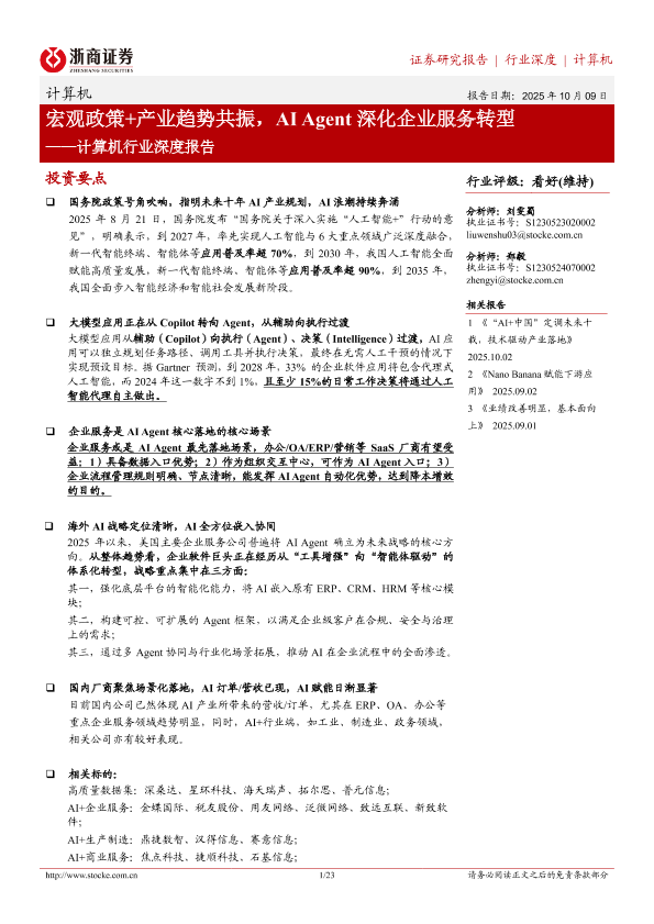 【浙商证券】【202510】宏观政策+产业趋势共振,AI Agent深化企业服务转型——计算机行业深度报告-23页