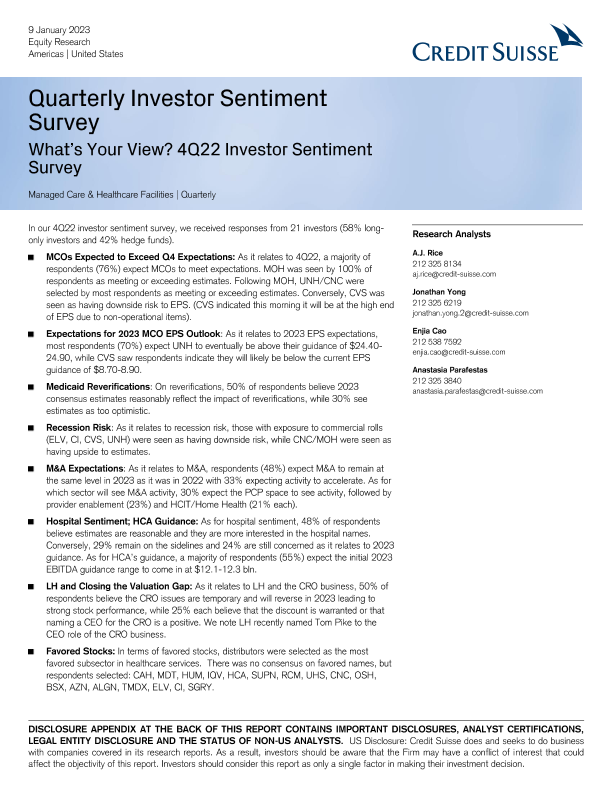 【Credit Suisse】【20230109】Managed Care & Healthcare Facilities Quarterly-16页