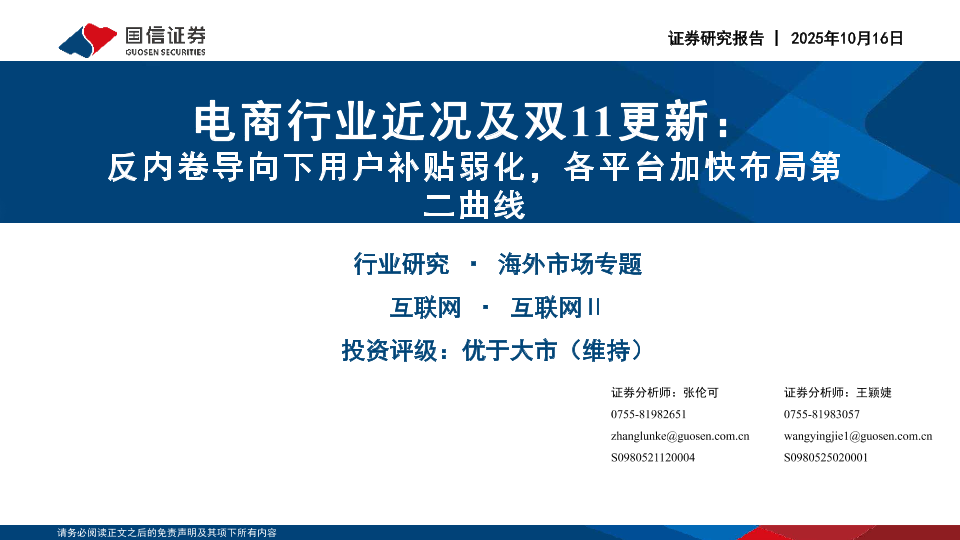 【国信证券】【202510】电商行业近况及双11更新:反内卷导向下用户补贴弱化,各平台加快布局第二曲线-21页