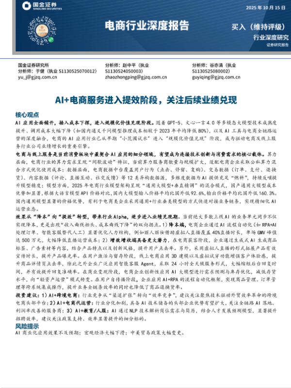 【国金证券】【2025】电商行业深度报告_AI+电商服务进入提效阶段_关注后续业绩兑现-22页
