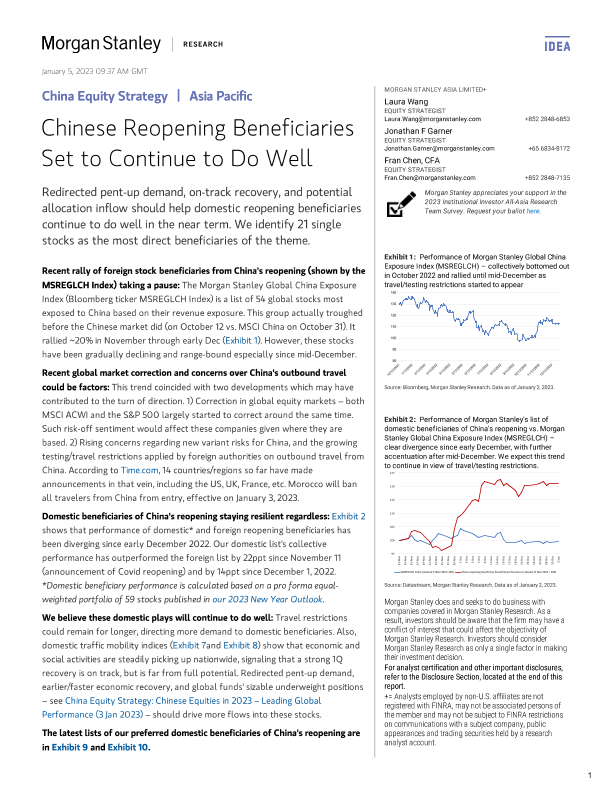 【Morgan Stanley】【20230105】China Equity Strategy | Chinese Reopening Beneficiaries Set to Continue to Do Well-8页