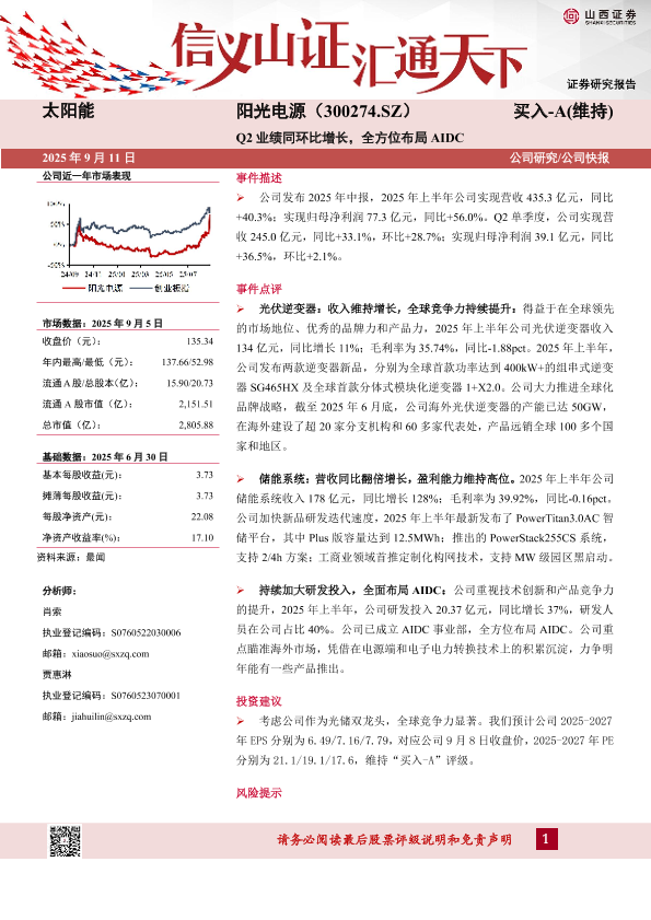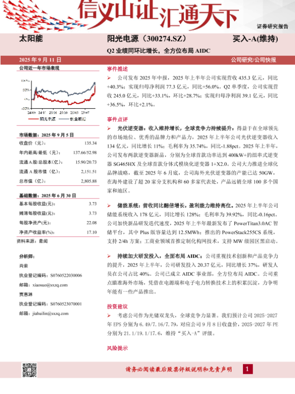 【山西证券】【202509】阳光电源(300274)-Q2业绩同环比增长,全方位布局AIDC-5页