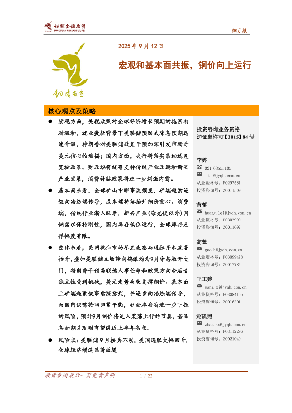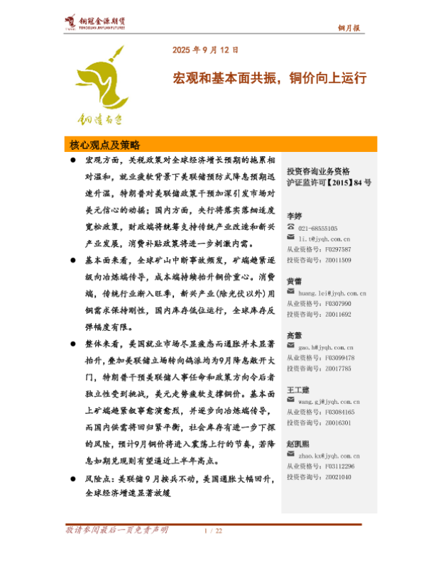 【铜冠金源期货】【202509】宏观和基本面共振,铜价向上运行-22页