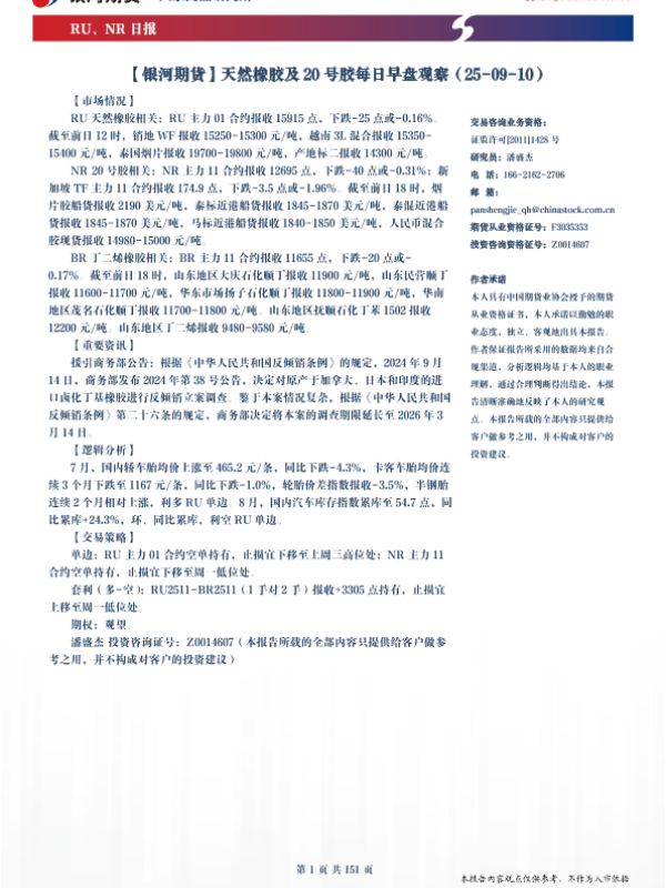 交易策略 丁二烯橡胶 天然橡胶 市场分析 20号胶