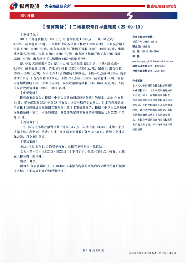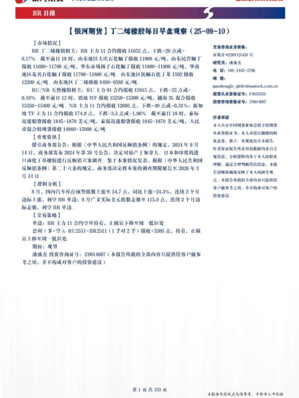 【银河期货】【202409】丁二烯橡胶每日早盘观察-153页