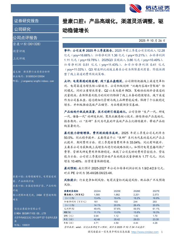 【信达证券】【2025】登康口腔:产品高端化,渠道灵活调整,驱动稳健增长-4页