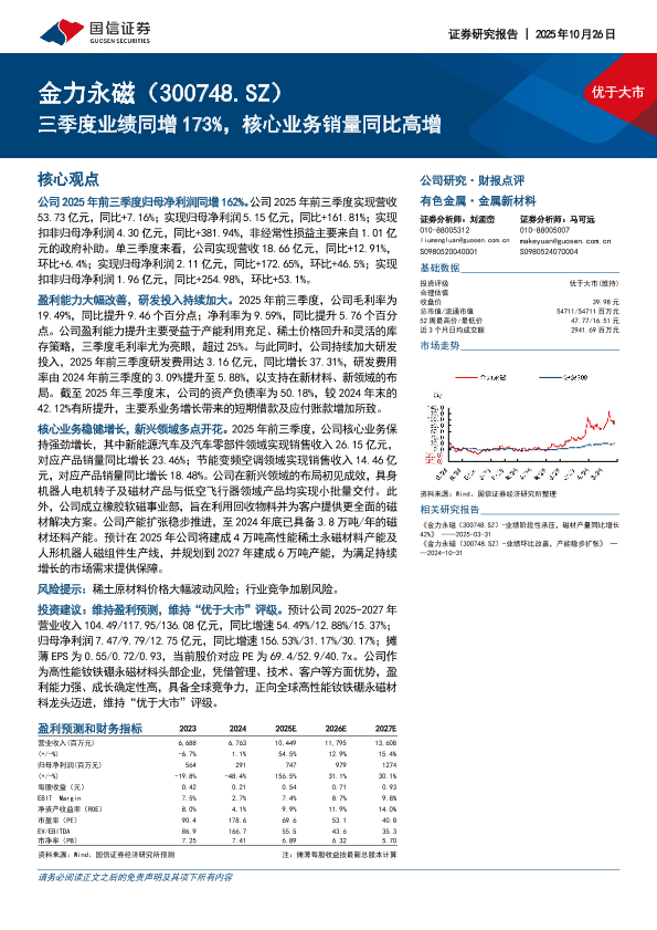 【国信证券】【202510】优于大市 金力永磁(300748.SZ) 三季度业绩同增173%,核心业务销量同比高增-7页